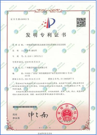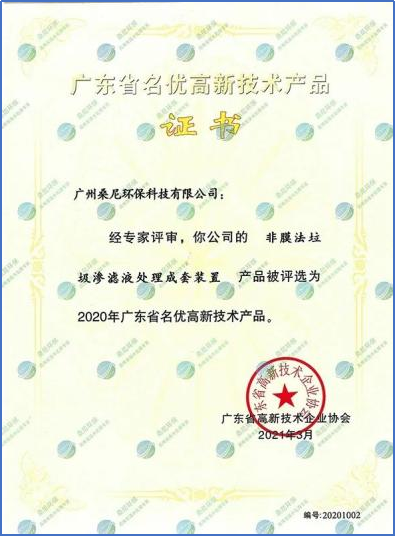 桑尼環(huán)保已申請和通過發(fā)明專利20余項(xiàng),實(shí)用新型專利10余項(xiàng),高新技術(shù)產(chǎn)品10余項(xiàng),每年堅持自主研發(fā)新的專利技術(shù)和產(chǎn)品,不斷創(chuàng)新。“非膜法垃圾滲濾液處理成套裝置”評為廣東省名優(yōu)高新技術(shù)產(chǎn)品。